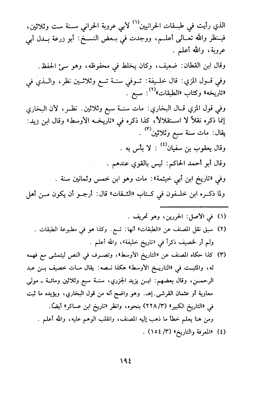 الذي رأيت في طبقات الحرانيين لأبي عروبة الحراني سنة ست وثلاثين، فينظر والله تعالى أعلم، ووجدت في بعض النسخ: أبو زرعة بدل أبي عروبة، والله أعلم.