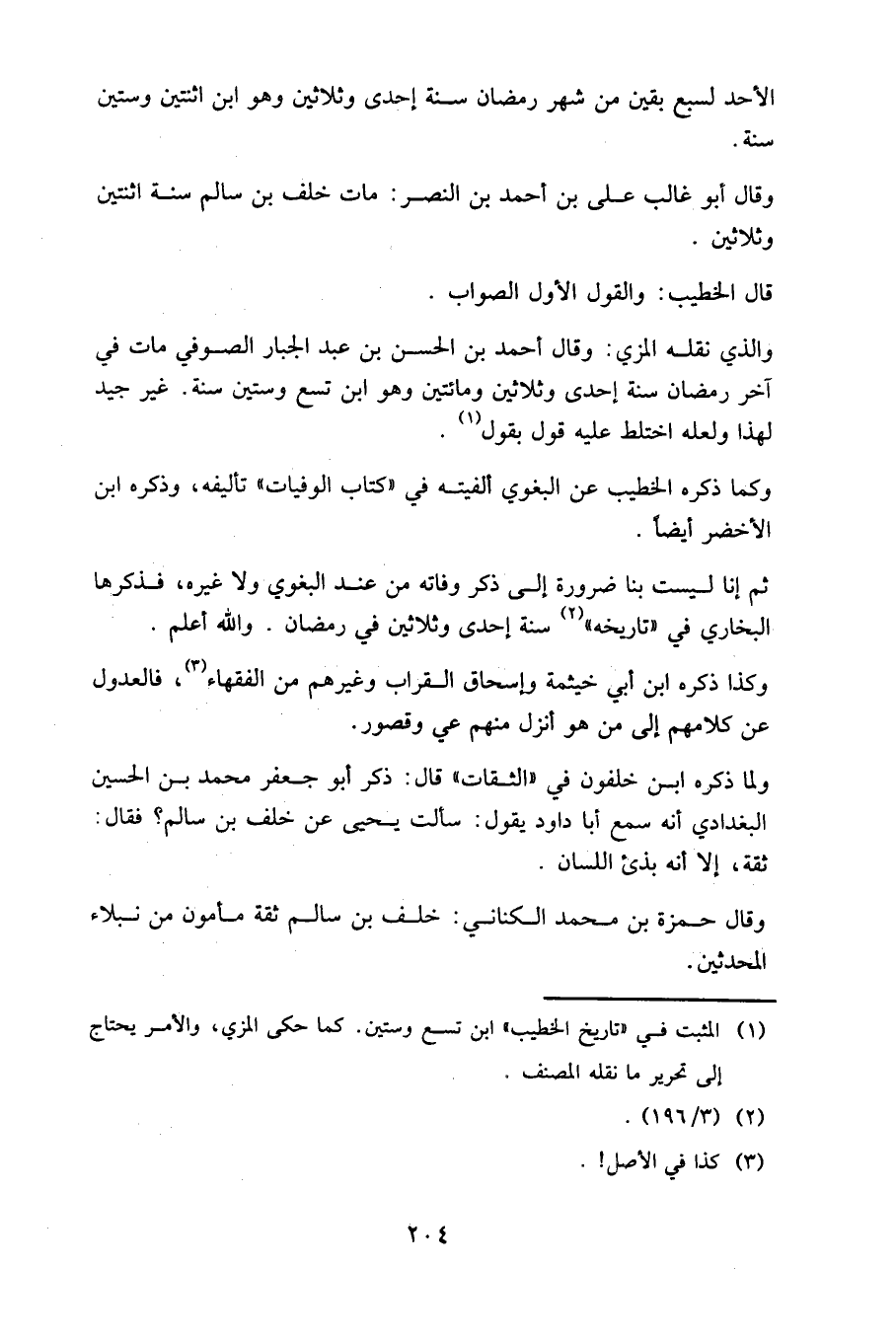 ولما ذكره ابن خلفون في "الثقات" قال: ذكر أبو جعفر محمد بن الحسين البغدادي أنه سمع أبا داود يقول: سألت يحيى عن خلف بن سالم؟ فقال: ثقة، إلا أنه بذيء اللسان.