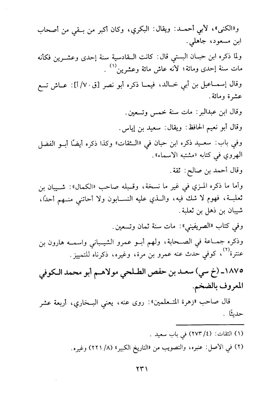 وفي باب: سعيد ذكره ابن حبان في "الثقات" وكذا ذكره أيضا أبو الفضل الهروي في كتابه "مشتبه الأسماء".