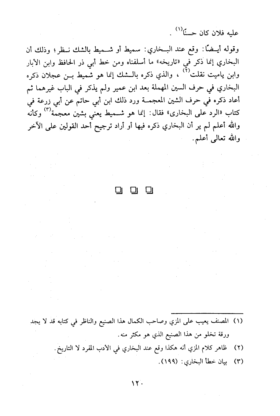 وقوله أيضا: وقع عند البخاري: سميط أو شميط بالشك نظر؛ وذلك أن البخاري إنما ذكر في "تاريخه" ما أسلفناه ومن خط أبي ذر الحافظ وابن الأبار وابن ياميت نقلت، والذي ذكره بالشك إنما هو شميط بن عجلان ذكره البخاري في حرف السين المهملة بعد ابن عمير، ولم يذكر في الباب غيرهما، ثم أعاد ذكره في حرف الشين المعجمة، ورد ذلك ابن أبي حاتم عن أبي زرعة في كتاب "الرد على البخاري" فقال: إنما هو شميط يعني بشين معجمة وكأنه والله أعلم لم ير أن البخاري ذكره فيها أو أراد ترجيح أحد القولين على الآخر، والله تعالى أعلم.