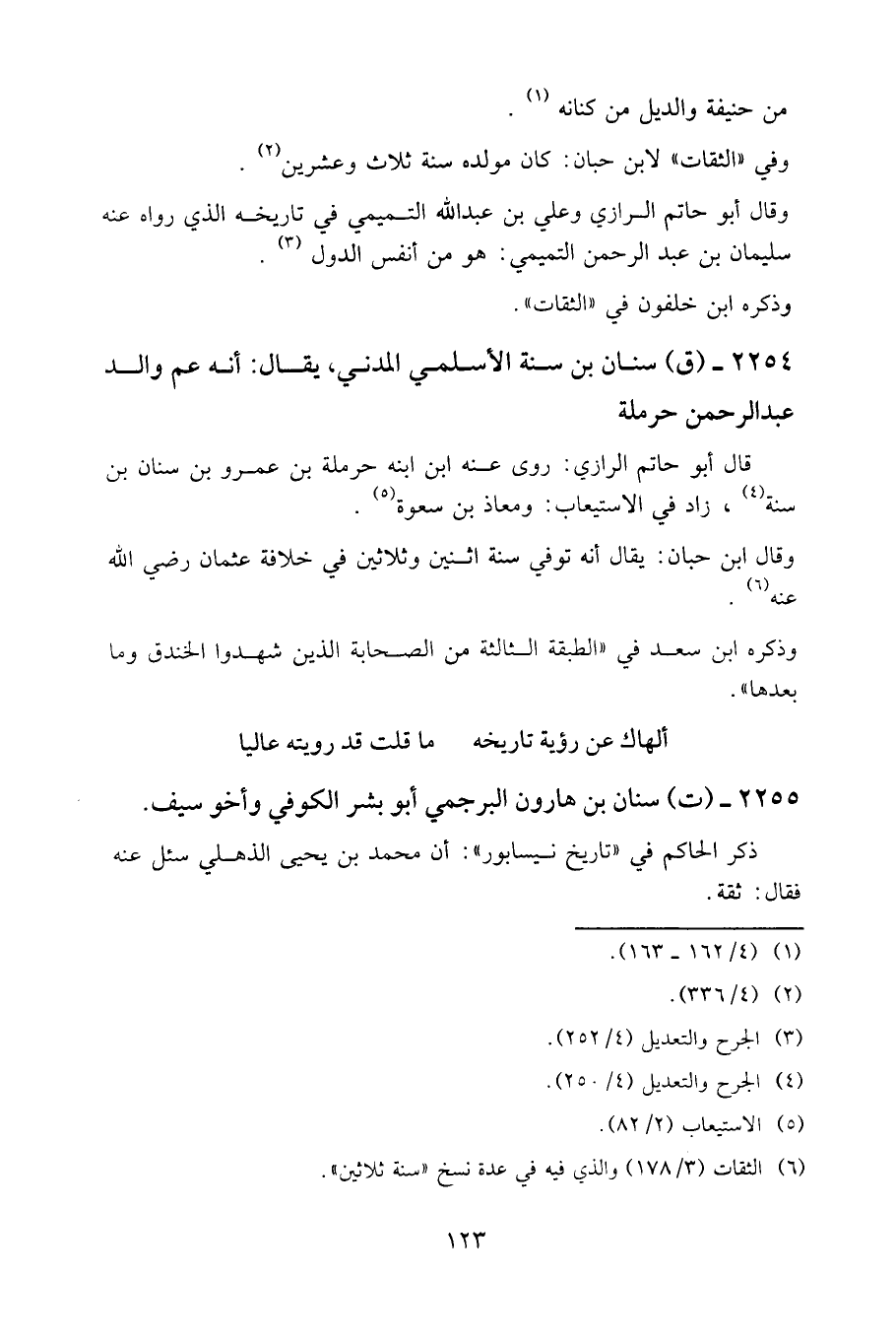 2254- (ق) سنان بن سنة الأسلمي المدني، يقال: إنه عم والد عبد الرحمن حرملة.