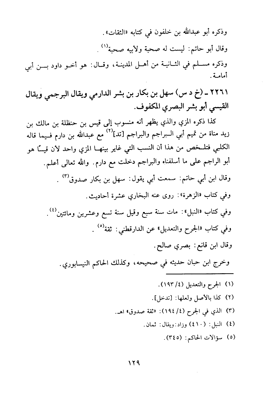 2261- (خ د س) سهل بن بكار بن بشر الدارمي ويقال البرجمي ويقال القيسي أبو بشر البصري المكفوف.