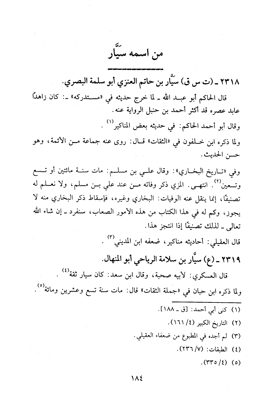 2318- (ت س ق) سيار بن حاتم العنزي أبو سلمة البصري.