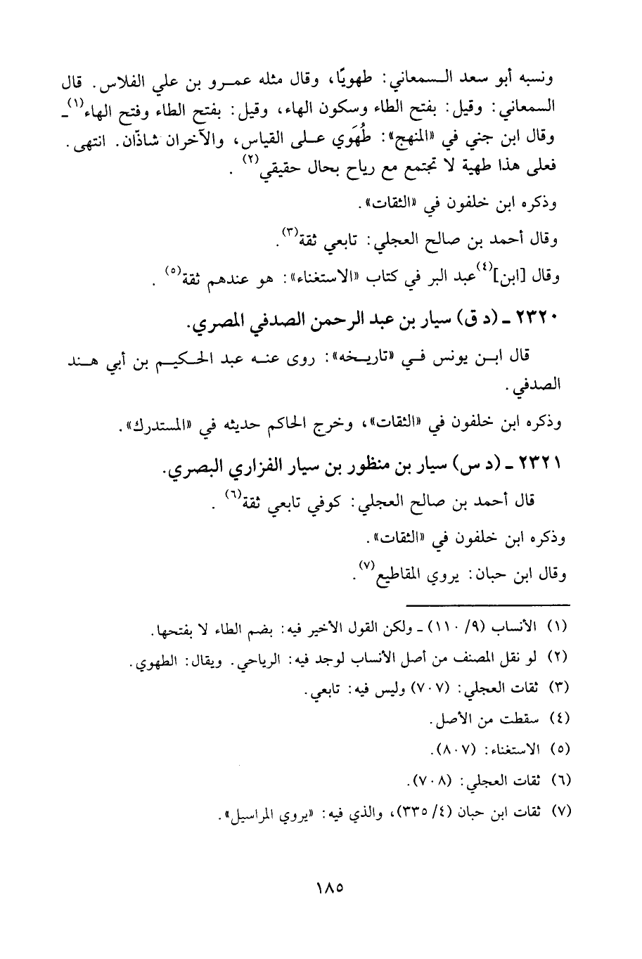 ونسبه أبو سعد السمعاني: طهويا، وقال مثله عَمرو بن علي الفلاس. قال السمعاني: وقيل: بفتح الطاء وسكون الهاء، وقيل: بفتح الطاء وفتح الهاء وقال ابن جني في "المنهج": طهوي على القياس، والآخران شاذان. انتهى.