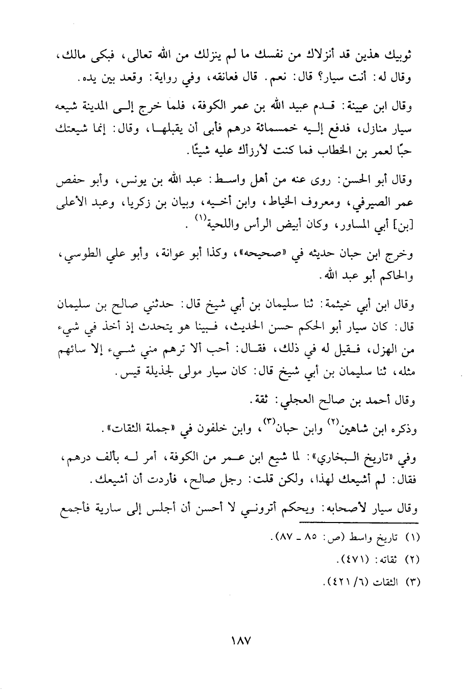 وقال سيار لأصحابه: ويحكم أتروني لا أحسن أن أجلس إلى سارية فأجمع