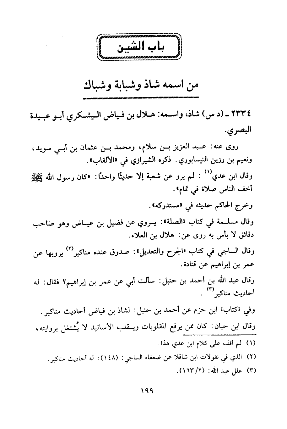 2334- (د س) شاذ، واسمه: هلال بن فياض اليشكري أبو عبيدة البصري.