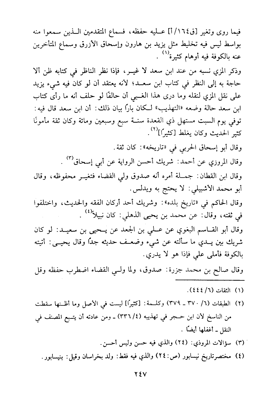 وقال الحاكم في "تاريخ بلده": وشريك أحد أركان الفقه والحديث، واختلفوا في ثقته، وقال: عن محمد بن يحيى الذهلي: كان نبيلا.