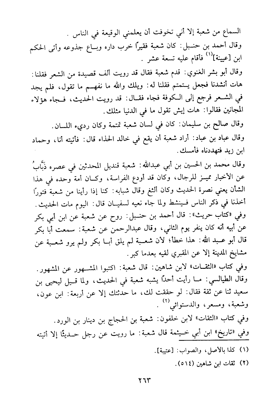وفي كتاب "الثقات" لابن شاهين: قال شعبة: اكتبوا المشهور عن المشهور.