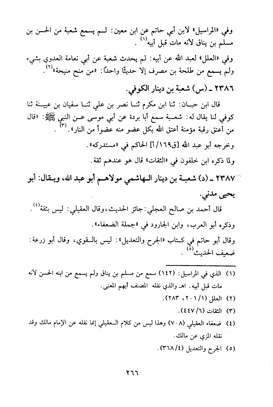 قال ابن حبان: حَدَّثنا ابن مكرم حَدَّثنا نصر بن علي حَدَّثنا سفيان بن عيينة حَدَّثنا كوفي لنا يقال له: شعبة سمع أبا بردة عن أبي موسى عن النبي صلى الله عليه وسلم: "قال من أعتق رقبة مؤمنة أعتق الله بكل عضو منه عضوا من النار".