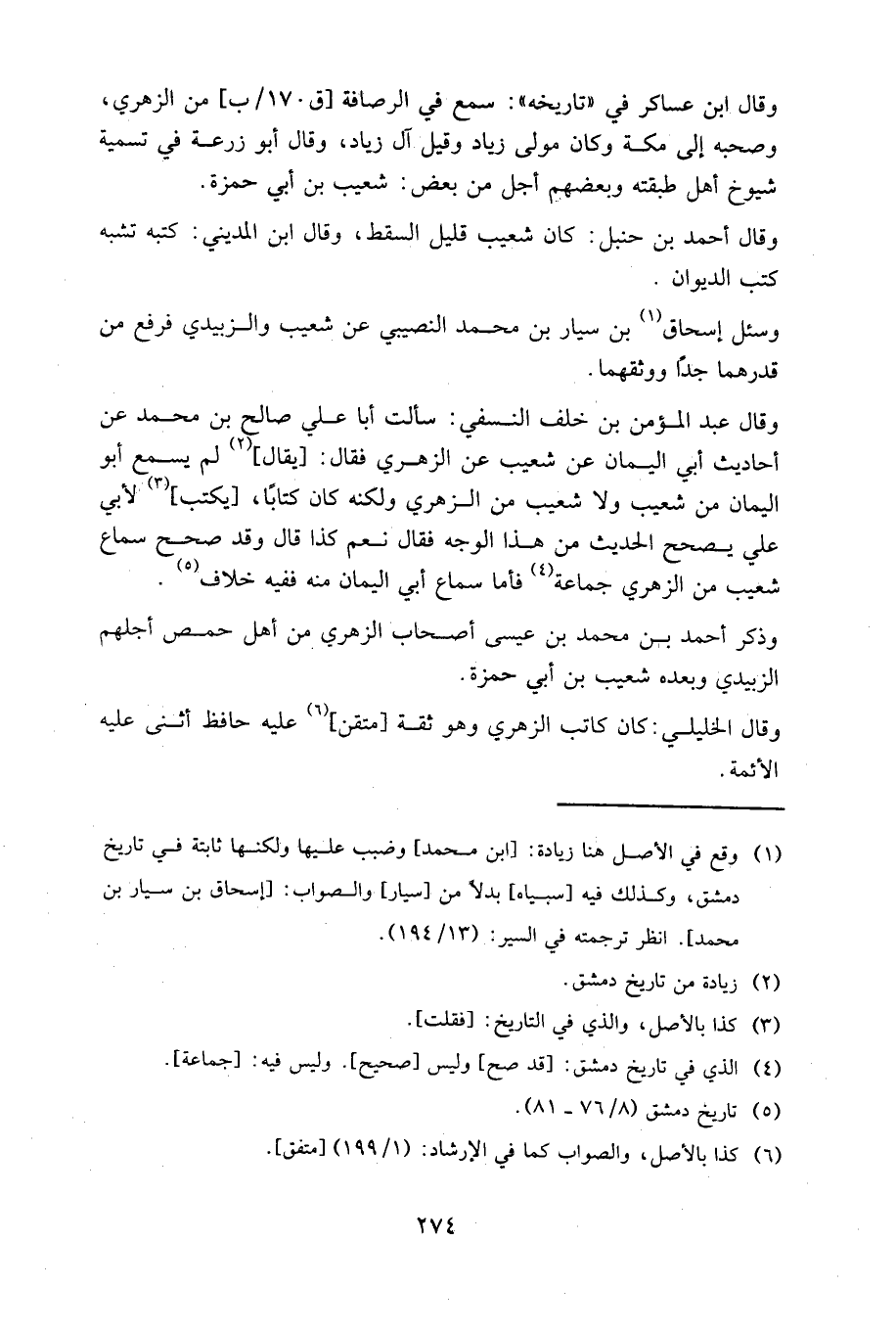 وذكر أحمد بن محمد بن عيسى أصحاب الزهري من أهل حمص أجلهم الزبيدي وبعده شعيب بن أبي حمزة.