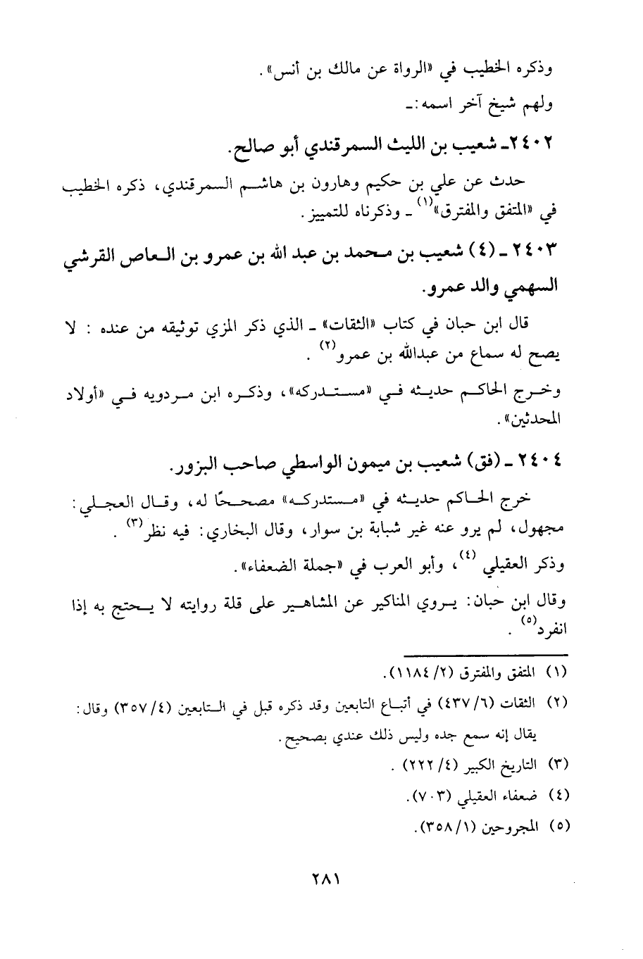 2403 - (4) شعيب بن محمد بن عبد الله بن عَمرو بن العاص القرشي السهمي والد عمرو.