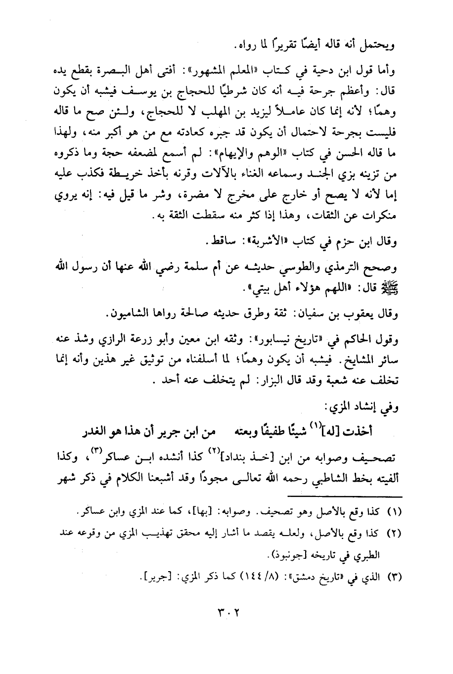 وقول الحاكم في "تاريخ نيسابور": وثقه ابن معين وأبو زرعة الرازي وشذ عنه سائر المشايخ، فيشبه أن يكون وهما؛ لما أسلفناه من توثيق غير هذين، وأنه إنما تخلف عنه شعبة وقد قال البزار: لم يتخلف عنه أحد.