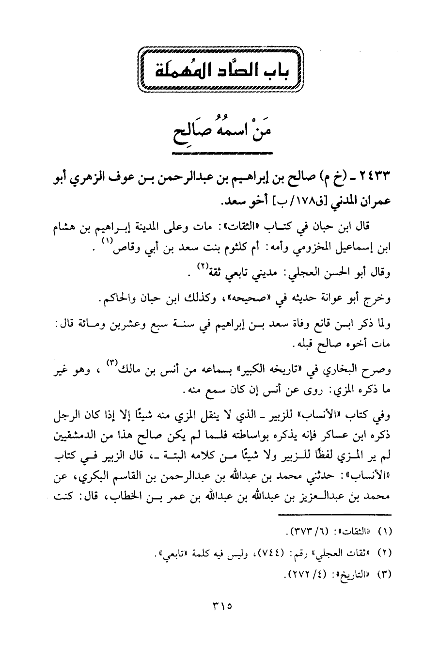 2433 - (خ م) صالح بن إبراهيم بن عبد الرحمن بن عوف الزهري أبو عمران المدني أخو سعد.