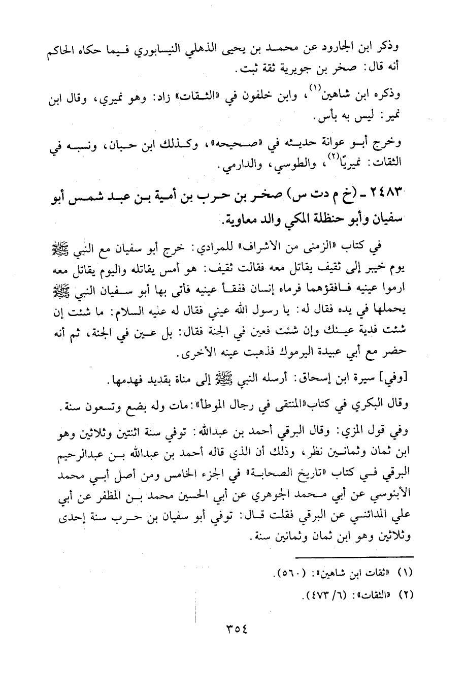 2483 - (خ م د ت س) صخر بن حرب بن أمية بن عبد شمس أبو سفيان وأبو حنظلة المكي والد معاوية.