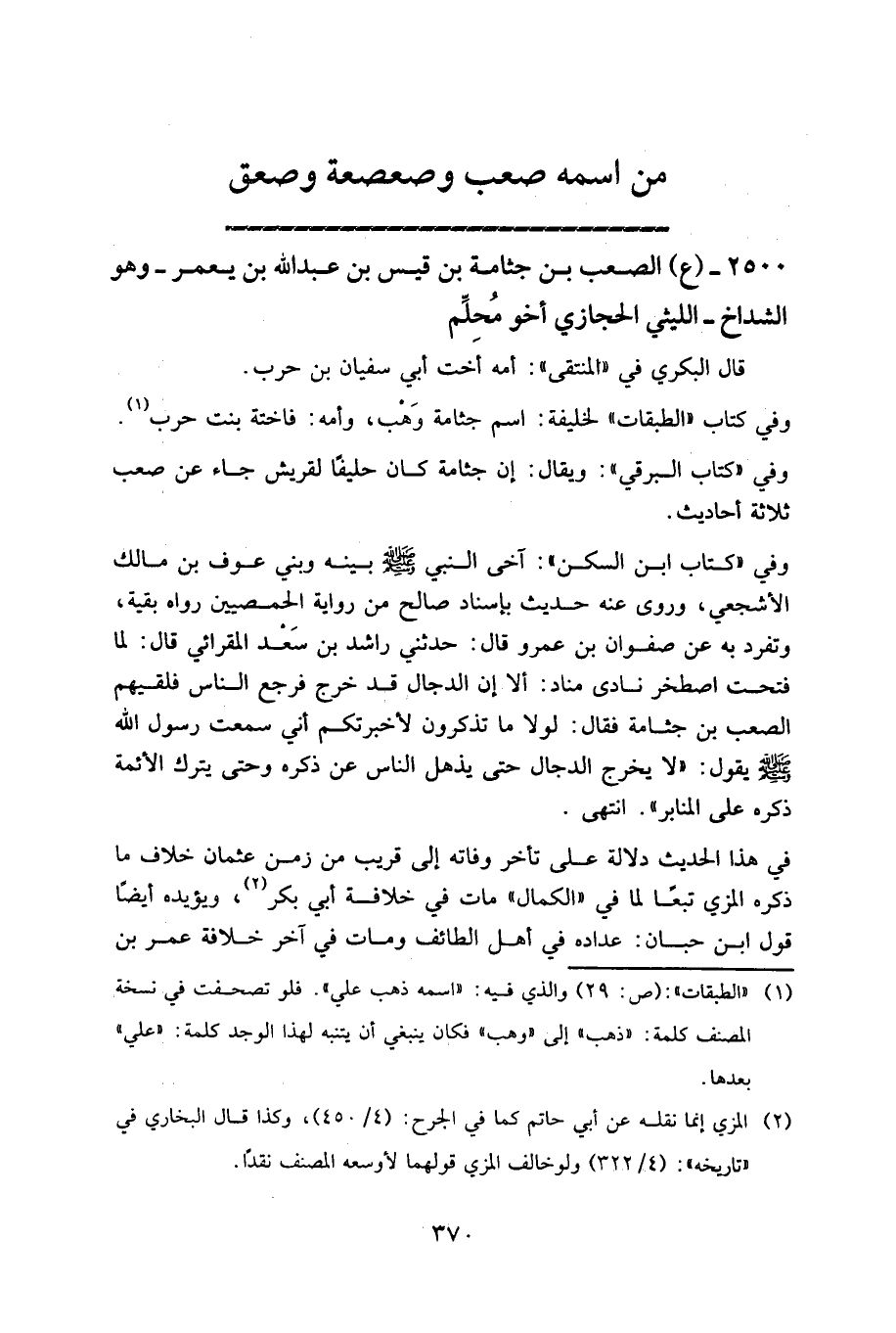 2500- (ع) الصعب بن جثامة بن قيس بن عبد الله بن يعمر وهو الشداخ الليثي الحجازي أخو محلم.