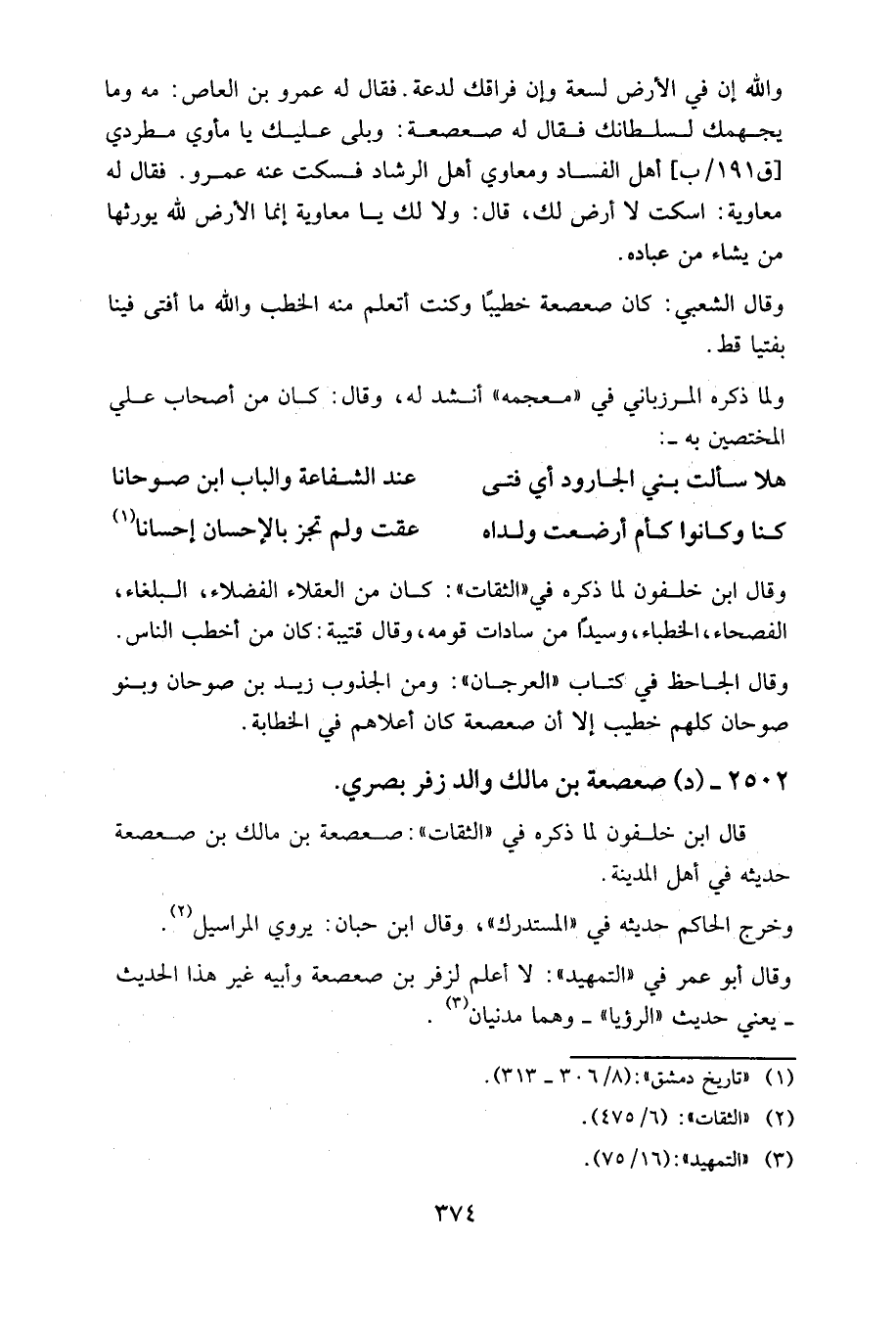 2502 - (د) صعصعة بن مالك والد زفر بصري.
