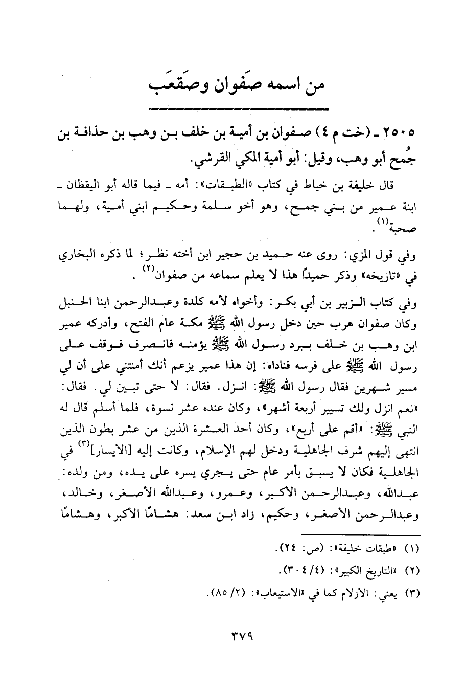 2505- (خت م 4) صفوان بن أمية بن خلف بن وهب بن حذافة بن جمح أبو وهب، وقيل: أبو أمية المكي القرشي.