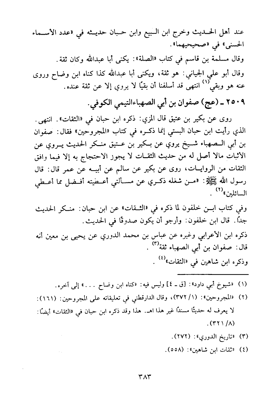 2509- (عج) صفوان بن أبي الصهباء التيمي الكوفي.