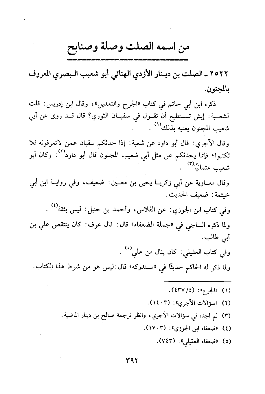 2522 - الصلت بن دينار الأزدي الهنائي أبو شعيب البصري المعروف بالمجنون.