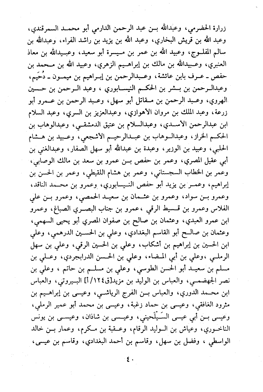 زرارة الحضرمي، وعبد الله بن عبد الرحمن الدارمي أبو محمد السمرقندي، وعبد الله بن قريش البخاري، وعبد الله بن يزيد بن راشد الفراء، وعبد الله بن سالم المفلوج، وعبيد الله بن عمر بن ميسرة أبو سعيد، وعبيد الله بن معاذ العنبري، وعبيد الله بن مالك بن إبراهيم الزهري، وعبيد الله بن محمد بن حفص عرف بابن عائشة، وعبد الرحمن بن إبراهيم بن ميمون دحيم، وعبد الرحمن بن بشر بن الحكم النيسابوري، وعبد الرحمن بن حسين الهروي، وعبد الرحمن بن مقاتل أبو سهل، وعبد الرحمن بن عَمرو أبو زرعة، وعبد الملك بن مروان الأهوازي، وعبد العزيز بن السري، وعبد السلام بن عبد الرحمن الأسدي، وعبد السلام بن عتيق الدمشقي، وعبد الوهاب بن الحكم الخراز، وعبد الوهاب بن عبد الرحيم الأشجعي، وعبيد بن هشام الحلبي، وعبيد بن الوزير، وعبدة بن عبد الله أبو سهل الصفار، وعبد الغني بن أبي عقيل المصري، وعمر بن حفص بن عَمرو بن سعد بن مالك الوصابي، وعمر بن الخطاب السجستاني، وعمر بن هشام اللقيطي، وعمر بن الحسن بن إبراهيم، وعمر بن يزيد أبو حفص النيسابوري، وعمرو بن محمد الناقد، وعمرو بن سواد، وعمرو بن عثمان بن سعيد الحمصي، وعمرو بن علي الفلاس، وعمرو بن قسيط الرقي، عَمرو بن جناب البصري الصباغ، وعمرو بن عَمرو العبدي، وعثمان بن صالح بن صفوان المصري أبو يحيى السهمي، وعثمان بن صالح أبو القاسم البغدادي، وعلي بن الحسين الدرهمي، وعلي بن الحسين بن إبراهيم بن أشكاب، وعلي بن الحسين الرقي، وعلي بن سهل الرملي، وعلي بن أبي المضاء، وعلي بن الحسن الدرابجردي، وعلي بن مسلم بن سعيد أبو الحسن الطوسي، وعلي بن مسلم بن حاتم، وعلي بن نصر الجهضمي، والعباس بن الوليد بن مزيد البيروتي، والعباس بن محمد الدوري، والعباس بن الفرج الرياشي، وعيسى بن إبراهيم بن مثرود الغافقي، وعيسي بن حماد زغبة، وعيسي بن محمد أبو عمير الرملي، وعيسى بن أبي عيسى السيلحيني، وعيسى بن شاذان، وعيسى بن يونس الناخوري، وعياش بن الوليد الرقام، وعقبة بن مكرم، وعمار بن خالد الواسطي، وفضل بن سهل، وقاسم بن أحمد البغدادي، وقاسم بن عيسى،