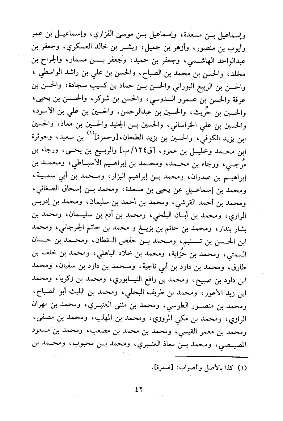 وإسماعيل بن مسعدة، وإسماعيل بن موسى الفزاري، وإسماعيل بن عمر وأيوب بن منصور، وأزهر بن جميل، وبشر بن خالد العسكري، وجعفر بن عبد الواحد الهاشمي، وجعفر بن حميد، وجعفر بن مسمار، والجراح بن مخلد، والحسن بن محمد بن الصباح، والحسن بن علي بن راشد الواسطي، والحسن بن الربيع البوراني والحسن بن حماد بن كسيب سجادة، والحسن بن عرفة والحسن بن عَمرو السدوسي، والحسن بن شوكر، والحسن بن يحيى، والحسين بن حريث، والحسين بن عبد الرحمن، والحسين بن علي بن الأسود، والحسين بن علي الخراساني، والحسين بن الجنيد والحسين بن معاذ، والحسين بن يزيد الكوفي، والحسين بن يزيد الطحان، وحمزة بن سعيد، وحوثرة بن محمد وخليل بن عمرو، والربيع بن يحيى، ورجاء بن مرجى، ورجاء بن محمد، ومحمد بن إبراهيم الأسباطي، ومحمد بن إبراهيم بن صدران، ومحمد بن إبراهيم البزار، ومحمد بن أبي سمينة، ومحمد بن إسماعيل عن يحيى بن مسعدة، ومحمد بن إسحاق الصغاني، ومحمد بن أحمد القرشي، ومحمد بن أحمد بن سليمان، ومحمد بن إدريس الرازي، ومحمد بن أبان البلخي، ومحمد بن آدم بن سليمان، ومحمد بن بشار بندار، ومحمد بن حاتم بن بزيع ومحمد بن حاتم الجرجاني، ومحمد بن الحسن بن تسنيم، ومحمد بن حفص القطان، ومحمد بن حسان السمتي، ومحمد بن حُزابة، ومحمد بن خلاد الباهلي، ومحمد بن خلف بن طارق، ومحمد بن داود بن أبي ناجية، ومحمد بن داود بن سفيان، ومحمد بن داود بن صبيح، ومحمد بن رافع النيسابوري، ومحمد بن زكريا، ومحمد بن زيد الأعور، ومحمد بن طريف البجلي، ومحمد بن الليث أبو الصباح، ومحمد بن منصور الطوسي، ومحمد بن مثنى العنبري، ومحمد بن مهران الرازي، ومحمد بن مكي المروزي، ومحمد بن الملهب، ومحمد بن مصفى، ومحمد بن معمر القيسي، ومحمد بن محمد بن مصعب، ومحمد بن مسعود المصيصي، ومحمد بن معاذ العنبري، ومحمد بن محبوب، ومحمد بن