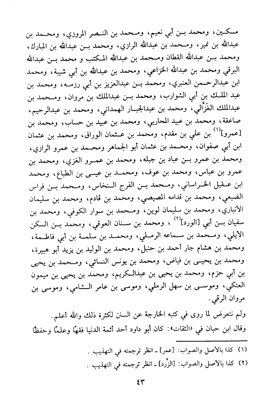 وقال ابن حبان في "الثقات": كان أبو داود أحد أئمة الدنيا فقها وعلما وحفظا