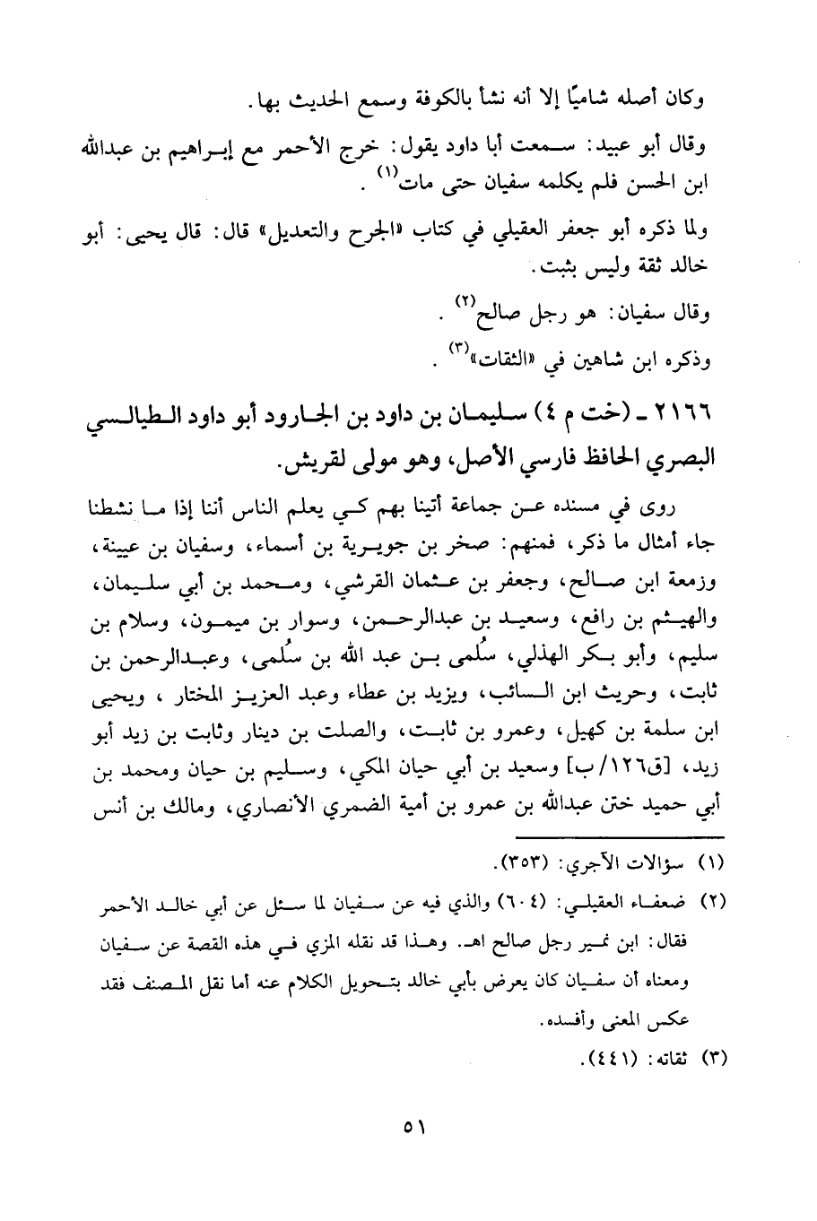2166- (خت م 4) سليمان بن داود بن الجارود أبو داود الطيالسي البصري الحافظ فارسي الأصل، وهو مولى لقريش.