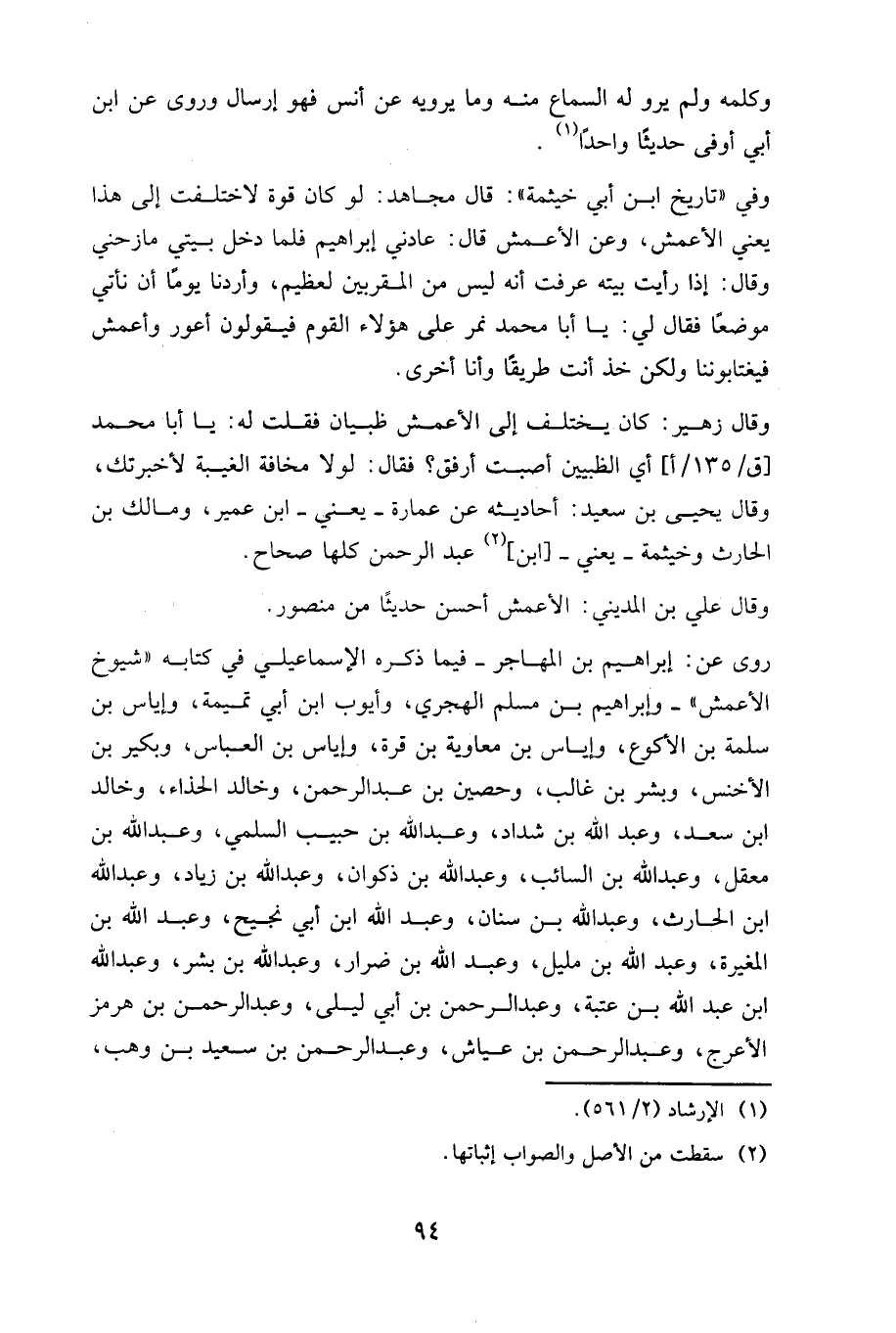 وقال زهير: كان يختلف إلى الأعمش ظبيان فقلت له: يا أبا محمد أي الظبيين أصبت أرفق؟ فقال: لولا مخافة الغيبة لأخبرتك، وقال يحيى بن سعيد: أحاديثه عن عمارة يعني ابن عمير، ومالك بن الحارث وخيثمة يعني (ابن) عبد الرحمن كلها صحاح.