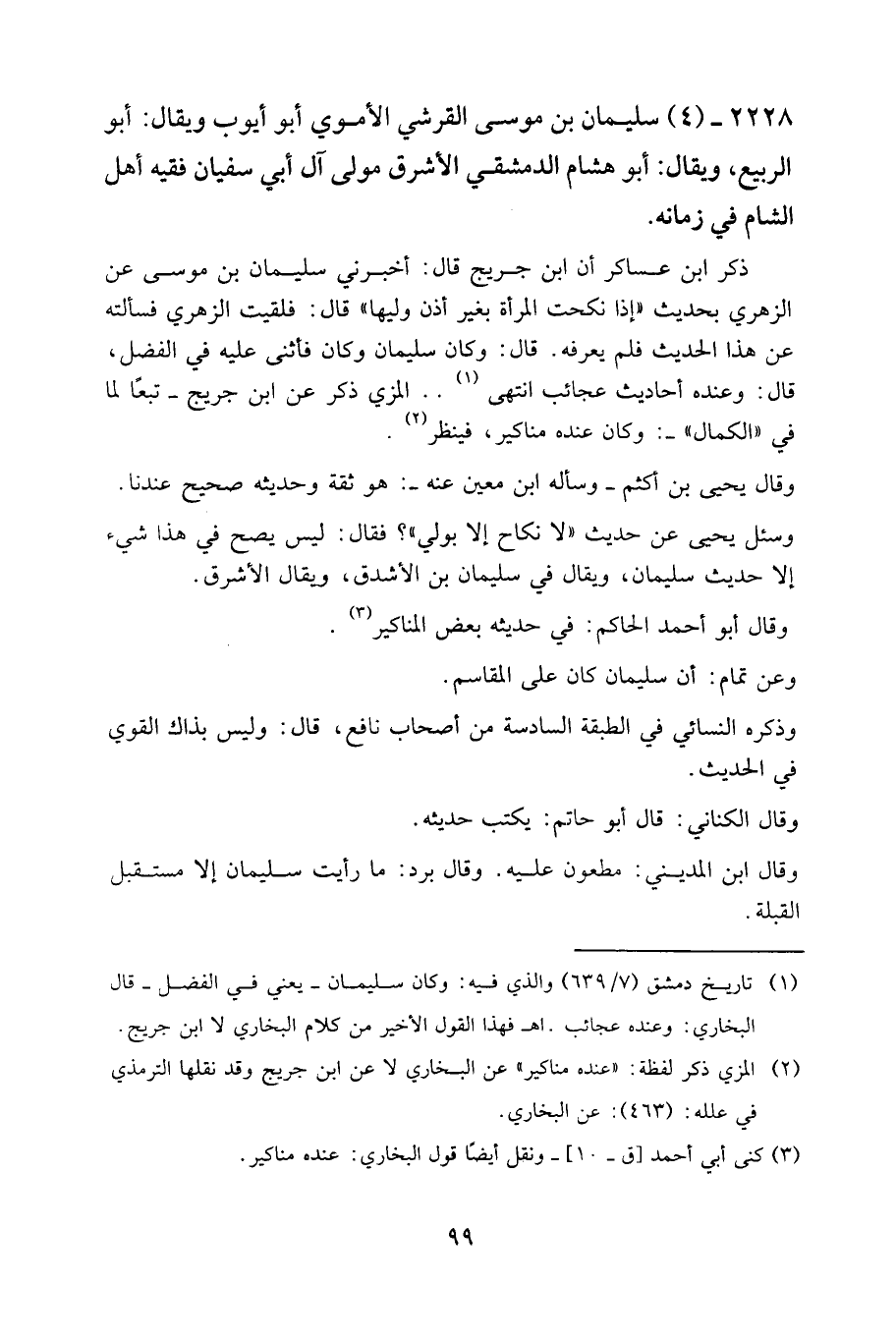 2228- (4) سليمان بن موسى القرشي الأموي أبو أيوب ويقال: أبو الربيع، ويقال: أبو هشام الدمشقي الأشرق مولى آل أبي سفيان فقيه أهل الشام في زمانه.