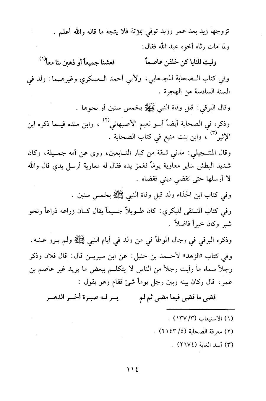 وفي كتاب "الزهد " لأحمد بن حنبل: عن ابن سيرين قال: قال فلان وذكر رجلا سماه ما رأيت رجلا من الناس لا يتكلم ببعض ما يريد غير عاصم بن عمر، قال وكان بينه وبين رجل يوما شيء فقام وهو يقول: