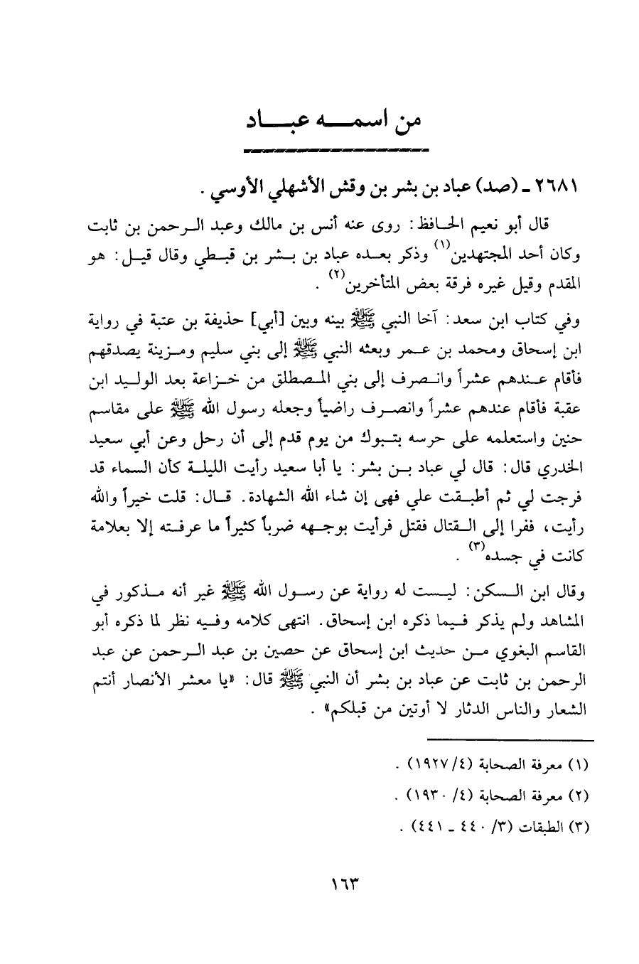2681- (صد) عباد بن بشر بن وقش الأشهلي الأوسي.