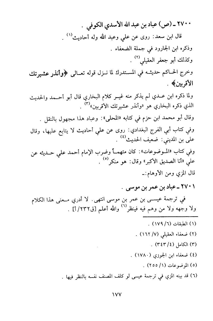 2700- (ص) عباد بن عبد الله الأسدي الكوفي.