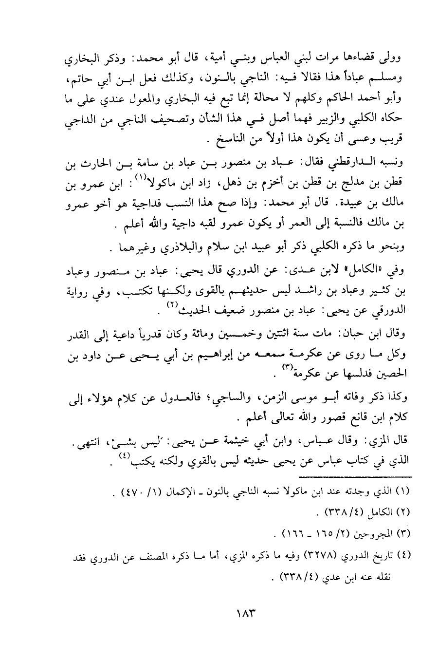 وفي "الكامل" لابن عدي: عن الدوري قال يحيى: عباد بن منصور وعباد بن كثير وعباد بن راشد ليس حديثهم بالقوي ولكنها تكتب، وفي رواية الدورقي عن يحيى: عباد بن منصور ضعيف الحديث.