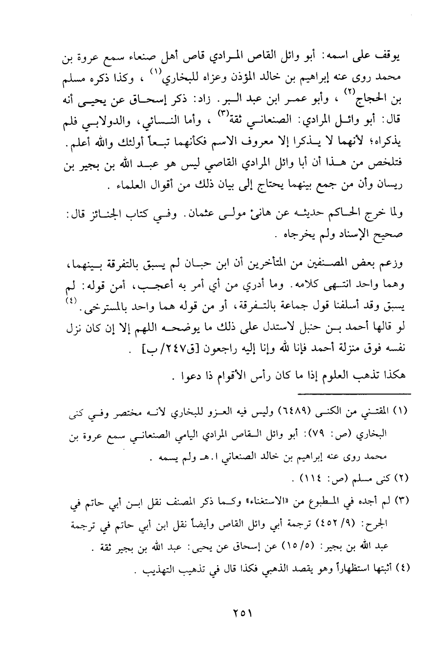 فتلخص من هذا أن أبا وائل المرادي القاصي ليس هو عبد الله بن بجير بن ريسان وأن من جمع بينهما يحتاج إلى بيان ذلك من أقوال العلماء.