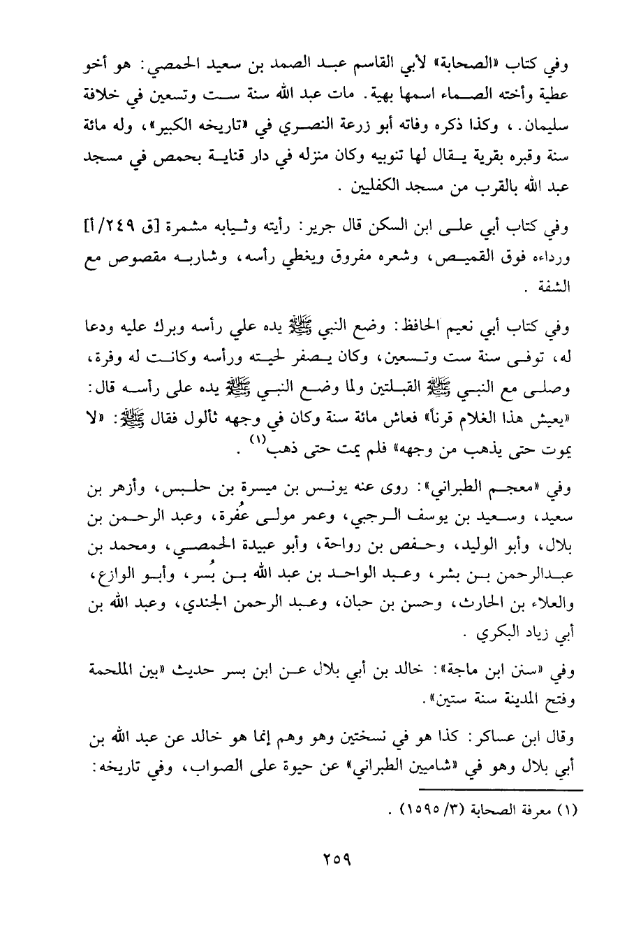 وفي كتاب أبي نعيم الحافظ: وضع النبي صلى الله عليه وسلم يده على رأسه وبرك عليه ودعا له، توفي سنة ست وتسعين، وكان يصفر لحيته ورأسه وكانت له وفرة، وصلى مع النبي صلى الله عليه وسلم القبلتين ولما وضع النبي صلى الله عليه وسلم يده على رأسه قال: يعيش هذا الغلام قرنا " فعاش مِائَة سنة وكان في وجهه ثألول فقال صلى الله عليه وسلم: لا يموت حتى يذهب من وجهه " فلم يمت حتى ذهب.