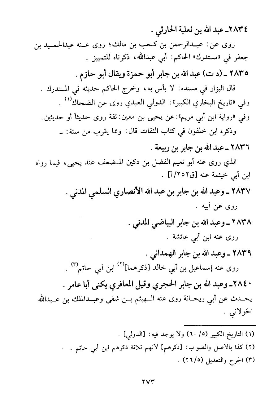 2837- وعبد الله بن جابر بن عبد الله الأنصاري السلمي المدني.