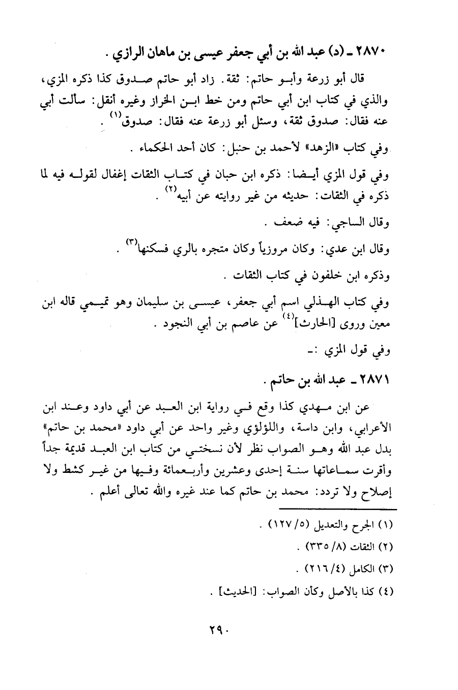 2870- (د) عبد الله بن أبي جعفر عيسى بن ماهان الرازي.