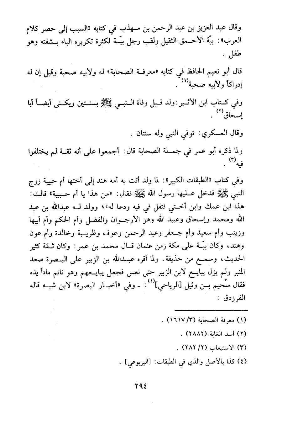 وفي كتاب ابن الأثير: ولد قبل وفاة النبي صلى الله عليه وسلم بسنتين ويكنى أيضا أبا إسحاق.