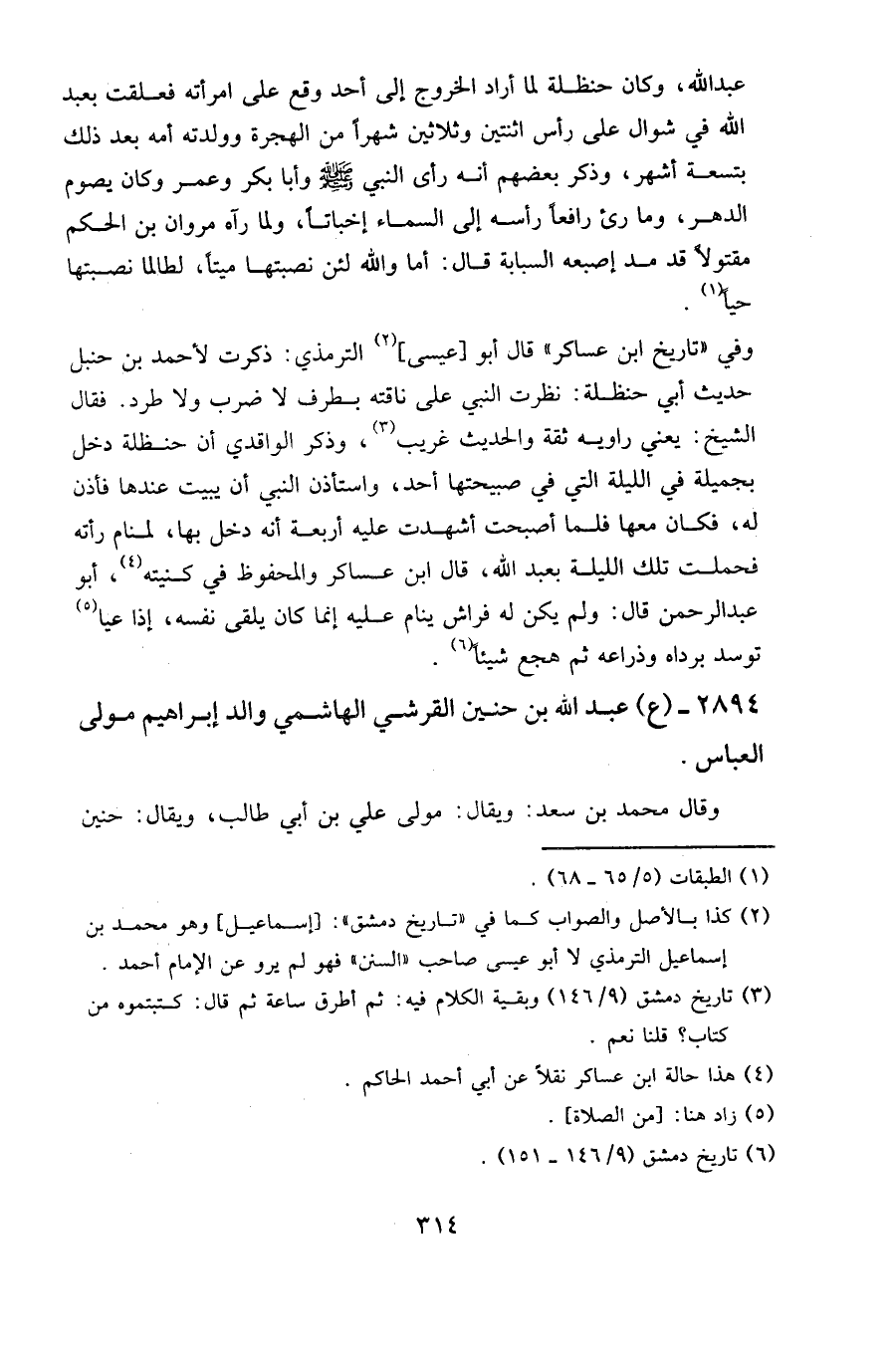 2894- (ع) عبد الله بن حنين القرشي الهاشمي والد إبراهيم مولى العباس.