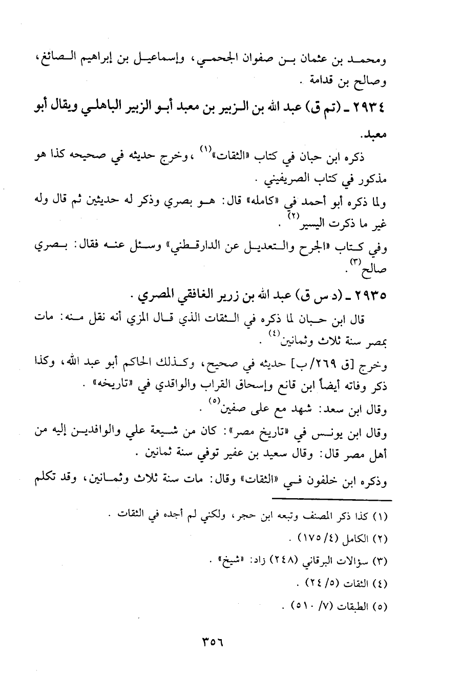 2934- (تم ق) عبد الله بن الزبير بن معبد أبو الزبير الباهلي ويقال أبو معبد.