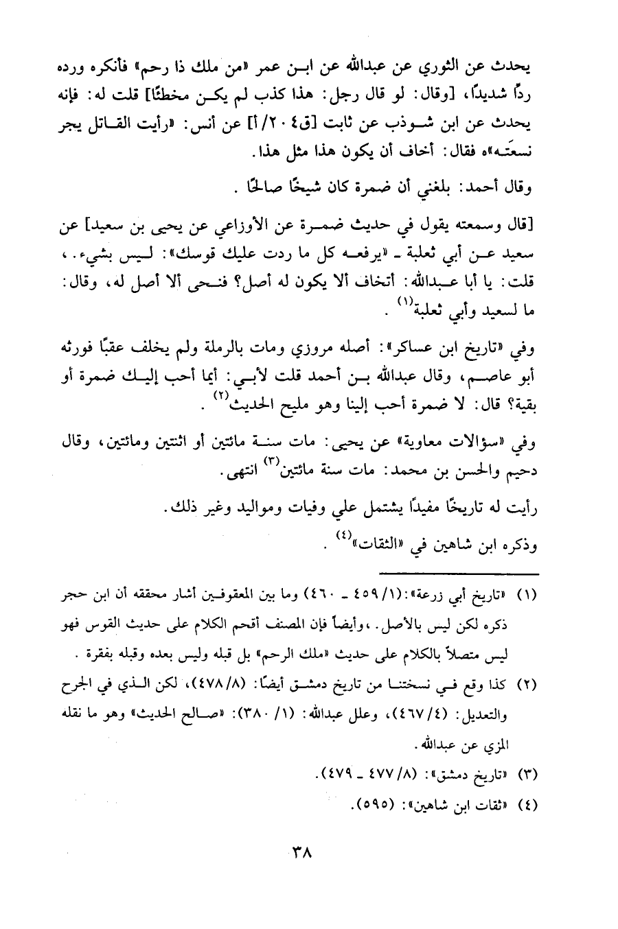 وفي "تاريخ ابن عساكر ": أصله مروزي ومات بالرملة ولم يخلف عقبا فورثه أبو عاصم، وقال عبد الله بن أحمد قلت لأبي: أيما أحب إليك ضمرة أو بقية؟ قال: لا ضمرة أحب إلينا وهو مليح الحديث.