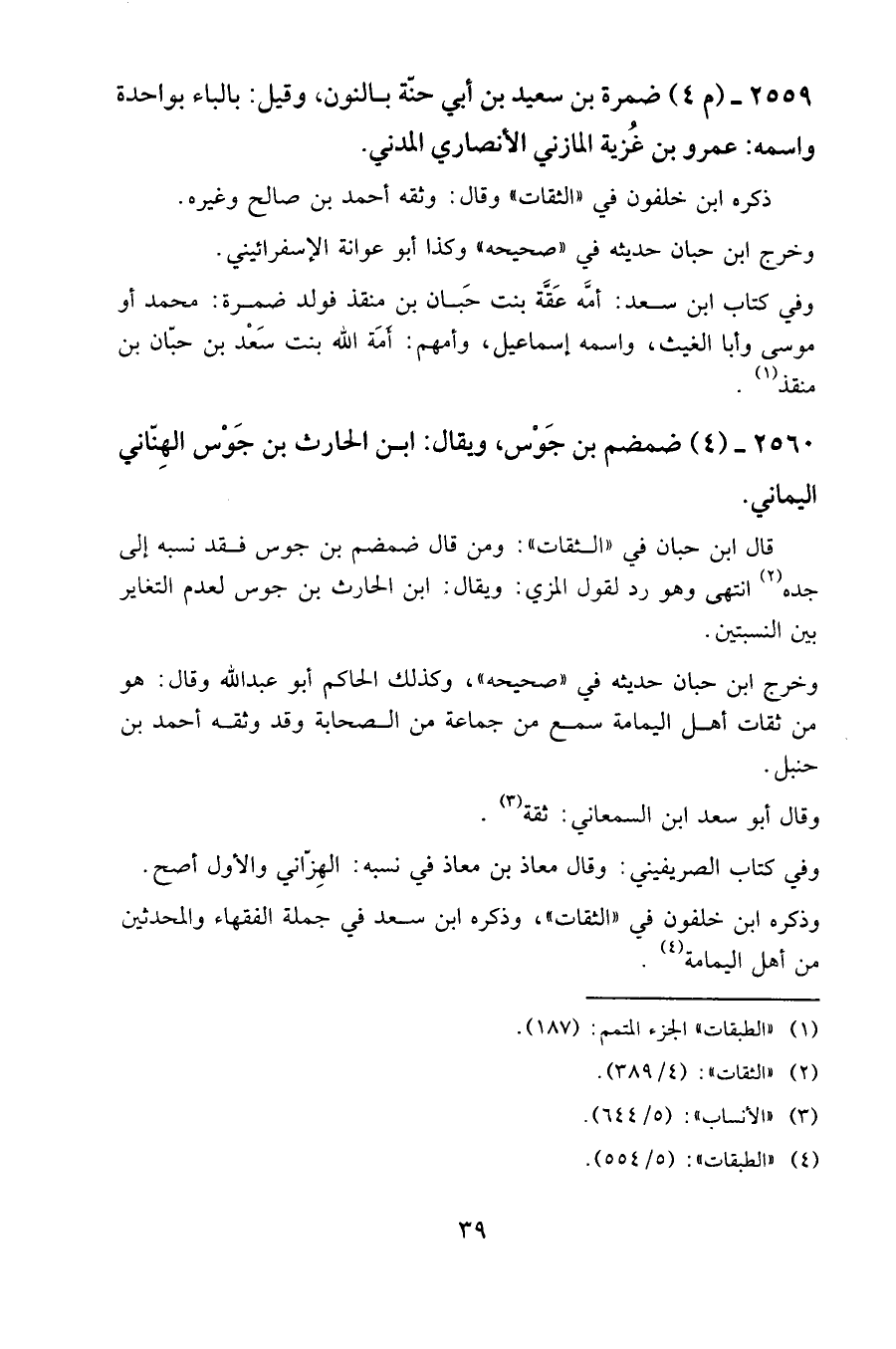 2560- (4) ضمضم بن جوس، ويقال: ابن الحارث بن جوس الهناني اليماني.