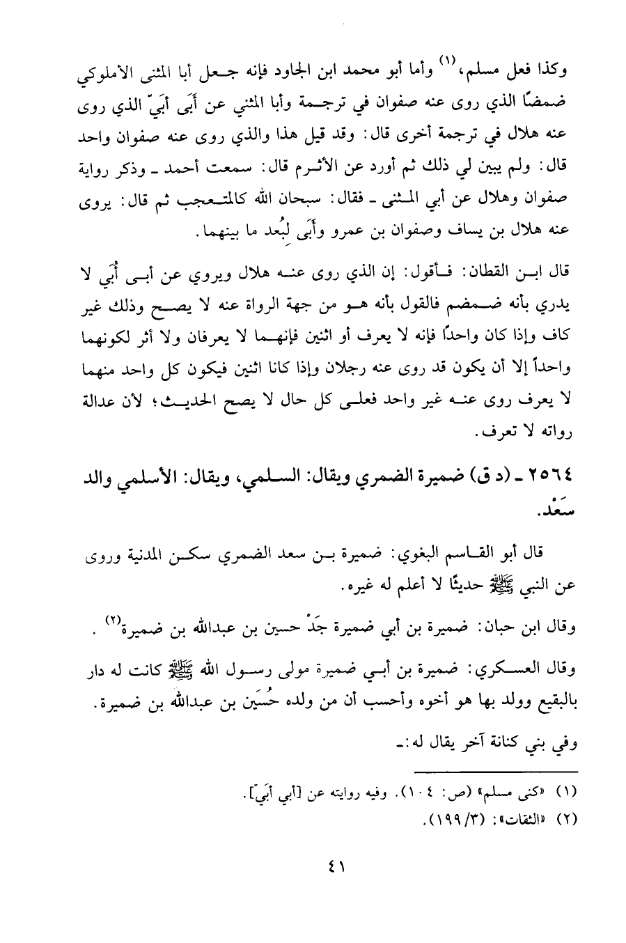 وكذا فعل مسلم، وأما أبو محمد بن الجاود فإنه جعل أبا المثنى الأملوكي ضمضا الذي روى عنه صفوان في ترجمة وأبا المثنى عن أبي أبي الذي روى عنه هلال في ترجمة أخرى قال: وقد قيل هذا والذي روى عنه صفوان واحد قال: ولم يبين لي ذلك ثم أورد عن الأثرم قال: سمعت أحمد وذكر رواية صفوان وهلال عن أبي المثنى فقال: سبحان الله كالمتعجب ثم قال: يروى عنه هلال بن يساف وصفوان بن عَمرو وأبى لبعد ما بينهما.