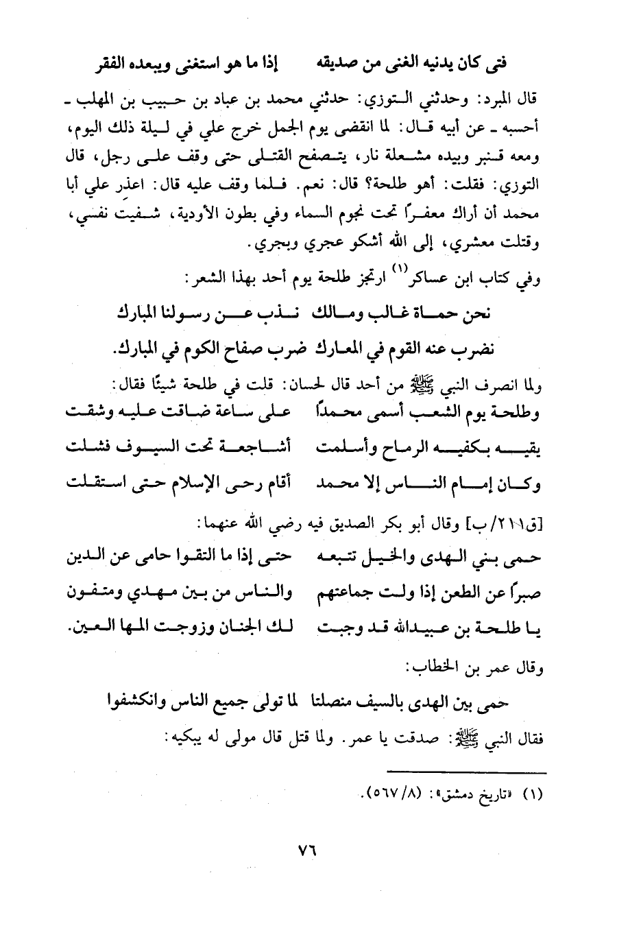 يا طلحة بن عبيد الله قد وجبت... لك الجنان وزوجت المها العين