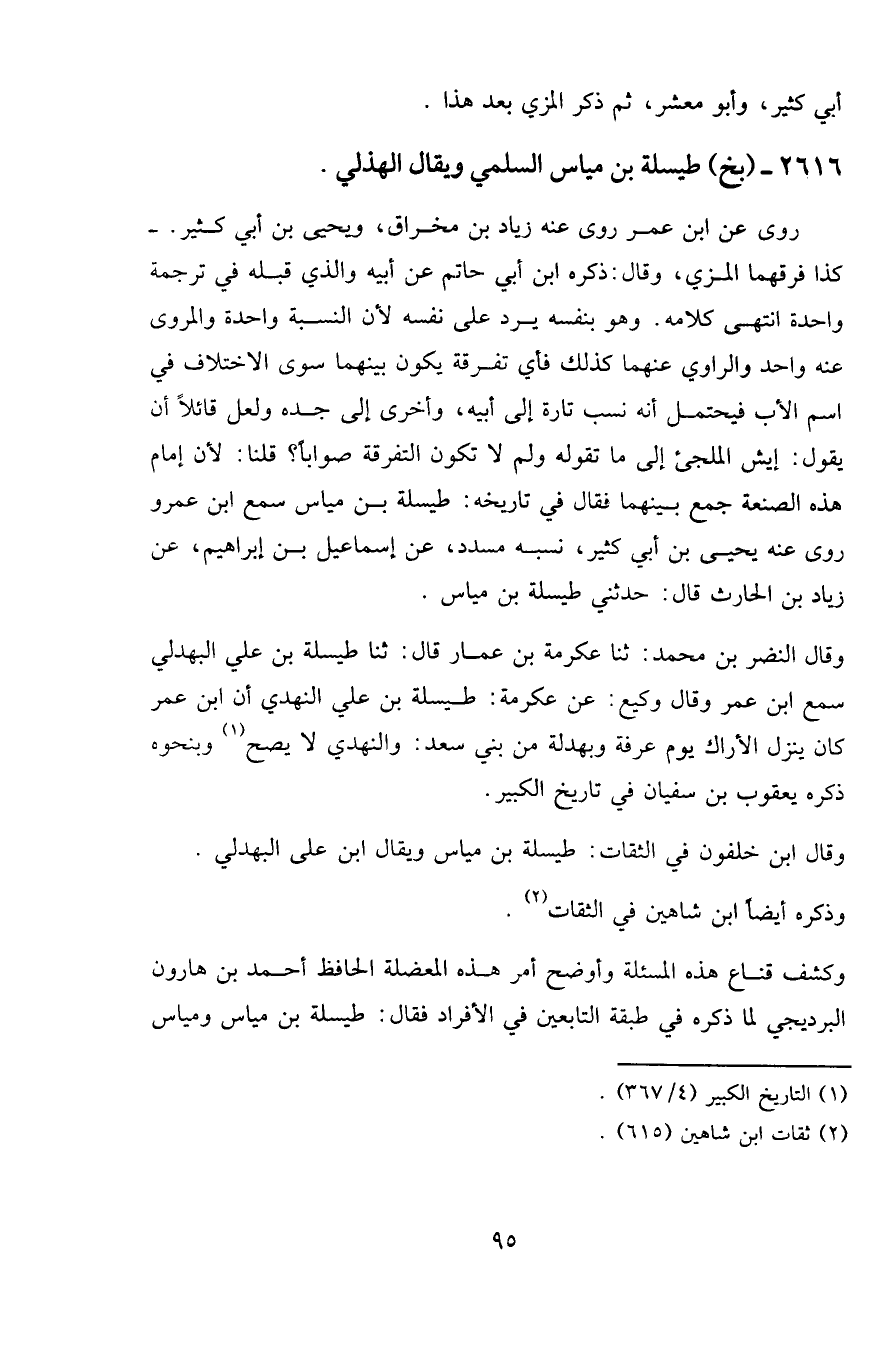 وقال ابن خلفون في الثقات: طيسلة بن مياس ويقال ابن علي البهدلي.