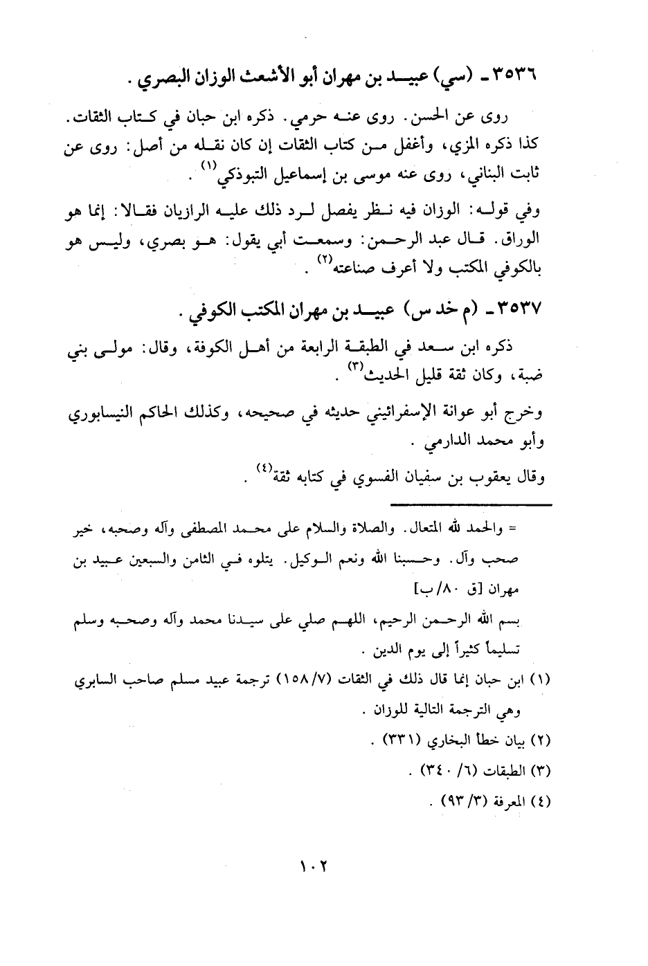 3536- (سي) عبيد بن مهران أبو الأشعث الوزان البصري.