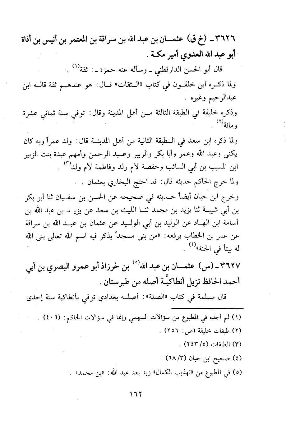 3626- (خ ق) عثمان بن عبد الله بن سراقة بن المعتمر بن أنيس بن أذاة أبو عبد الله العدوي أمير مكة.