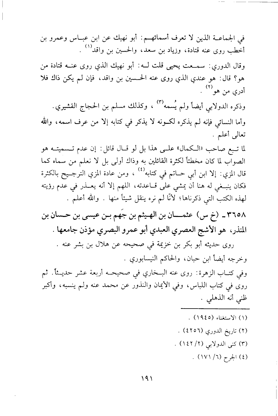 3658- (خ س) عثمان بن الهيثم بن جهم بن عيسى بن حسان بن المنذر، هو الأشج العصري العبدي أبو عَمرو البصري مؤذن جامعها.