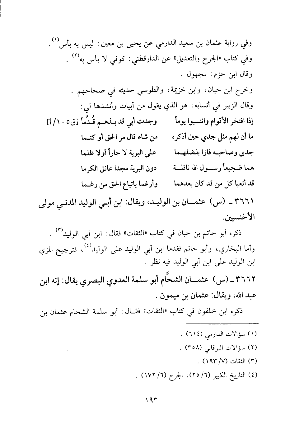ذكره ابن خلفون في كتاب "الثقات"، فقال: أبو سلمة الشحام عثمان بن
