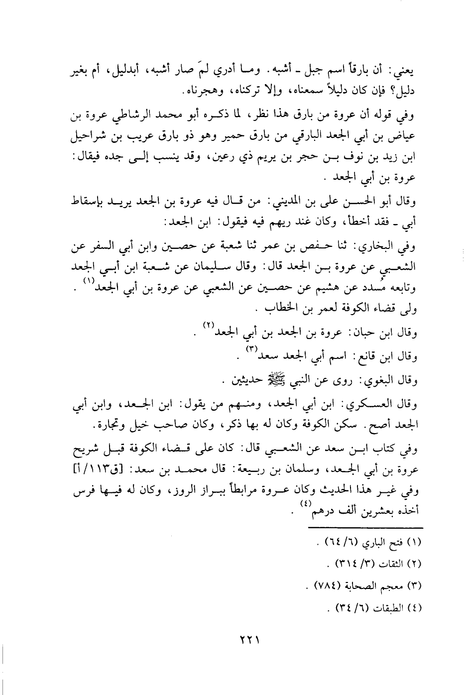 وفي كتاب ابن سعد عن الشعبي قال: كان على قضاء الكوفة قبل شريح عروة بن أبي الجعد، وسلمان بن ربيعة: قال محمد بن سعد: [ق 113/أ] وفي غير هذا الحديث وكان عروة مرابطا ببراز الروز، وكان له فيها فرس أخذه بعشرين ألف درهم.